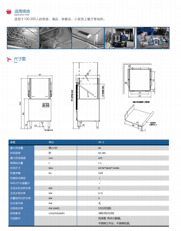 Commercial uncovered dishwasher hotel dining room Zhuohui AS-2 dishwasher automatic small canteen washing equipment