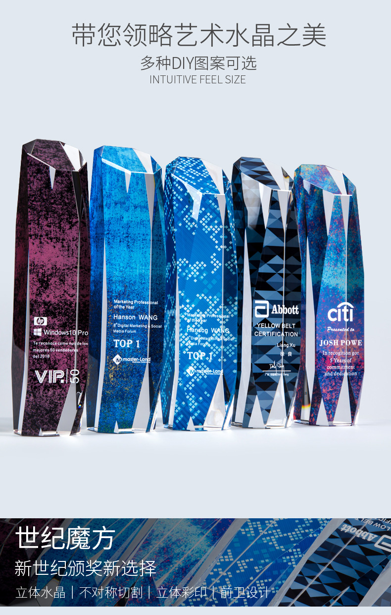 Century Magic Square Trophy Crystal Color Printed Diamond Engraving Custom Set Making Creative Annual Color Honor Trophy
