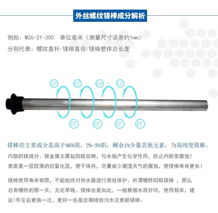 Applicable sea extra tooth magnesium rod electric water heater drain from anode rod to sacrifice anode protection rod