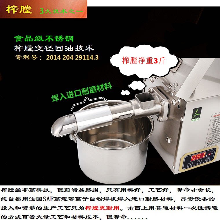 Small oil press household family rapeseed Sesame peanut stainless steel cold press Hot Press adjustment automatic temperature control New