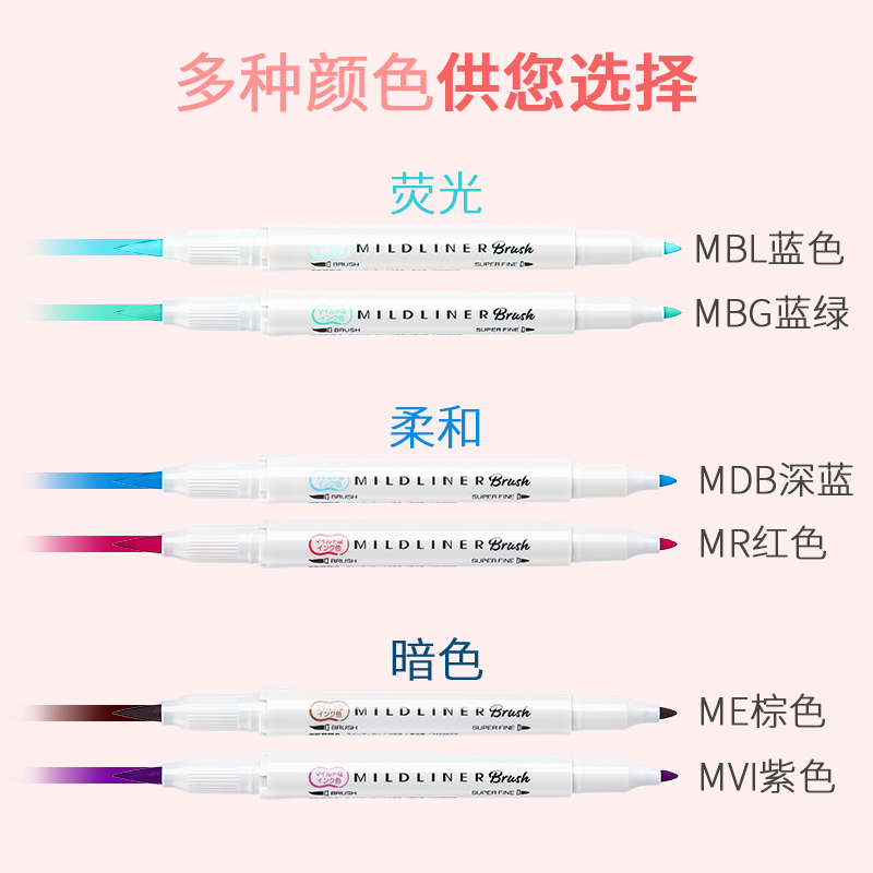 Japan ZEBRA ZEBRA WFT8 double head fluorescent pen soft head pen brush Student hand account pen mark stroke focus