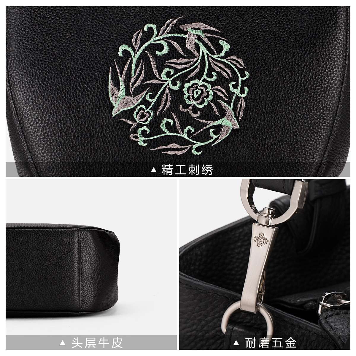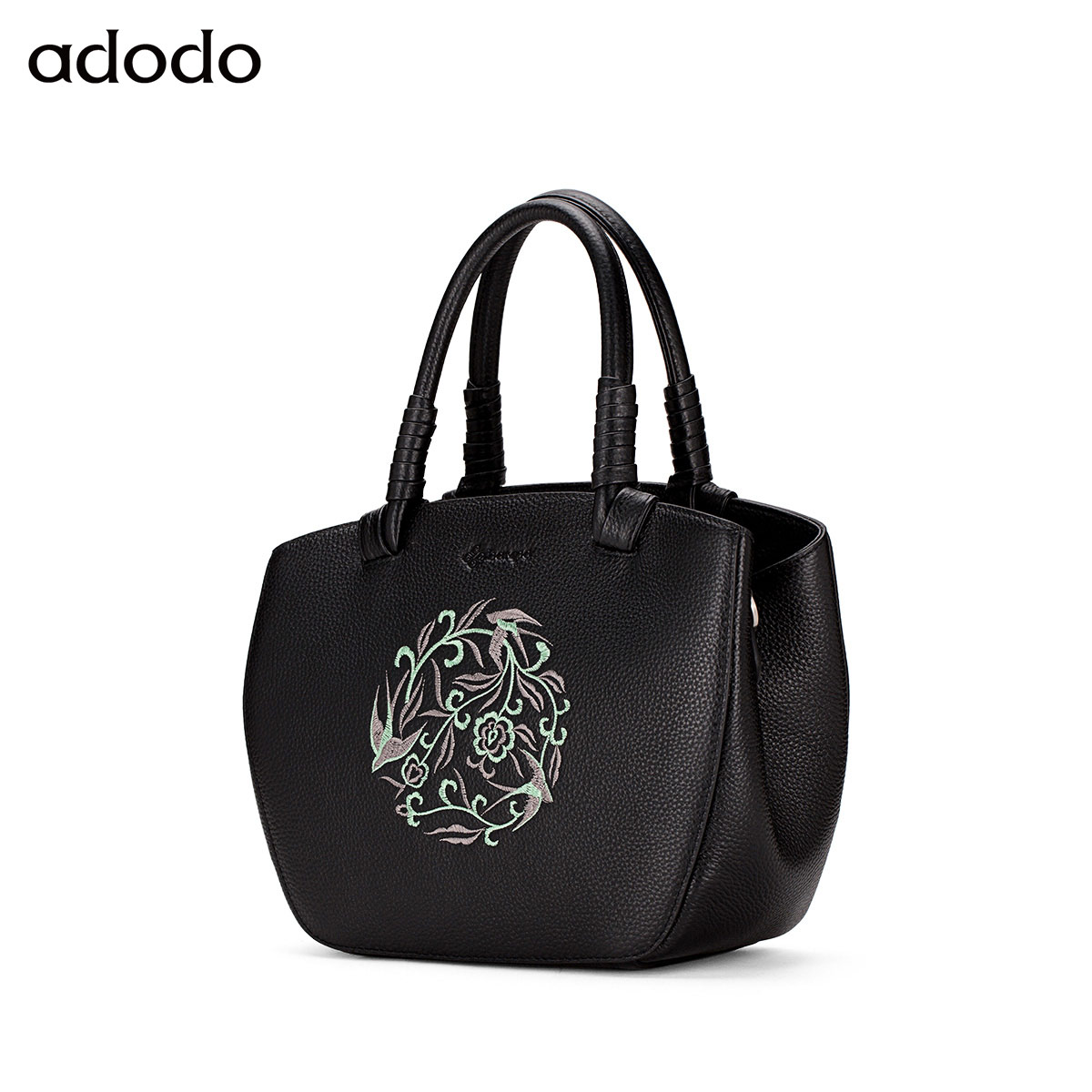 Half-slope adodo brand leather female bag, original female breed embroidery single shoulder slope bag temperament handbag
