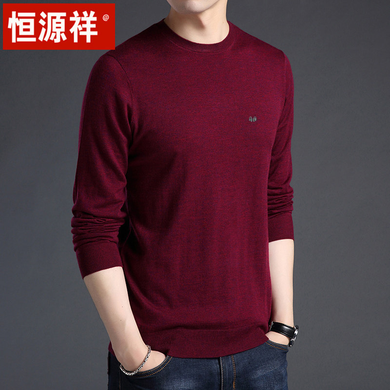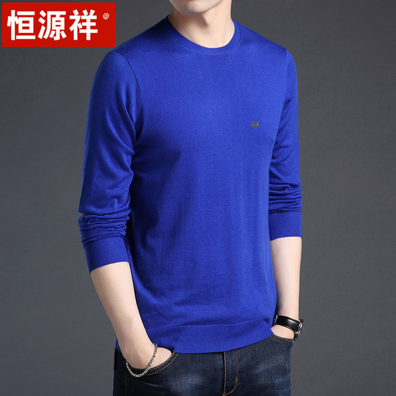 Hengyuan Xiang Man Long sleeves T-shirt with wool knit bottom-shirt round collar spring autumn and thin section middle-aged men's pure color sweater
