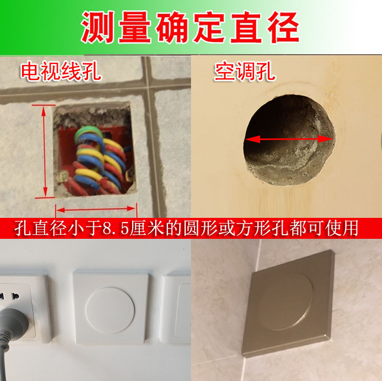 Square adhesive cover wall hole ugly plug cover 3M glue decorative paste threading hole Air conditioning drilling hole choke plug