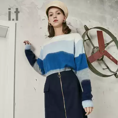 it izzue women's knitwear autumn long version slit color striped 4106F9D