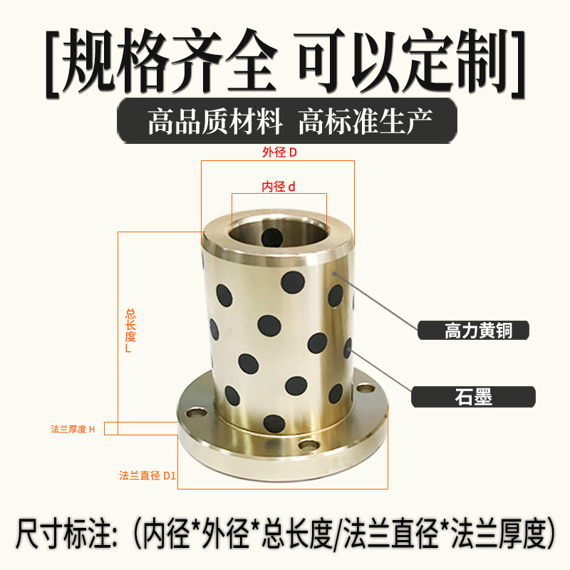Round flange MPTZ graphite copper sleeve self-lubricating bearing 16 20 25 Wear-resistant oil-free guide sleeve bushing