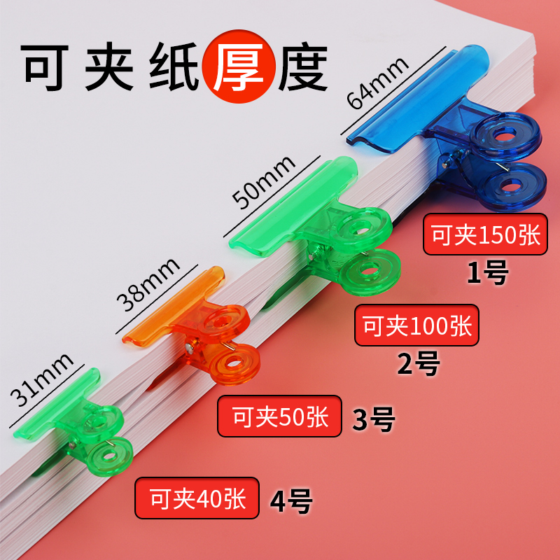 Qi Star 24 Round Clips Color Transparent Little Clear New Candy Color Long Tail Clip Large Note Clip Student Paper Folder Subtext Folder Subtext Office Life Home Plastic Clips