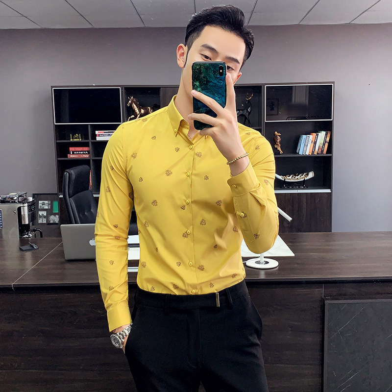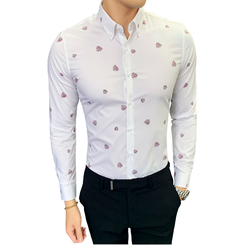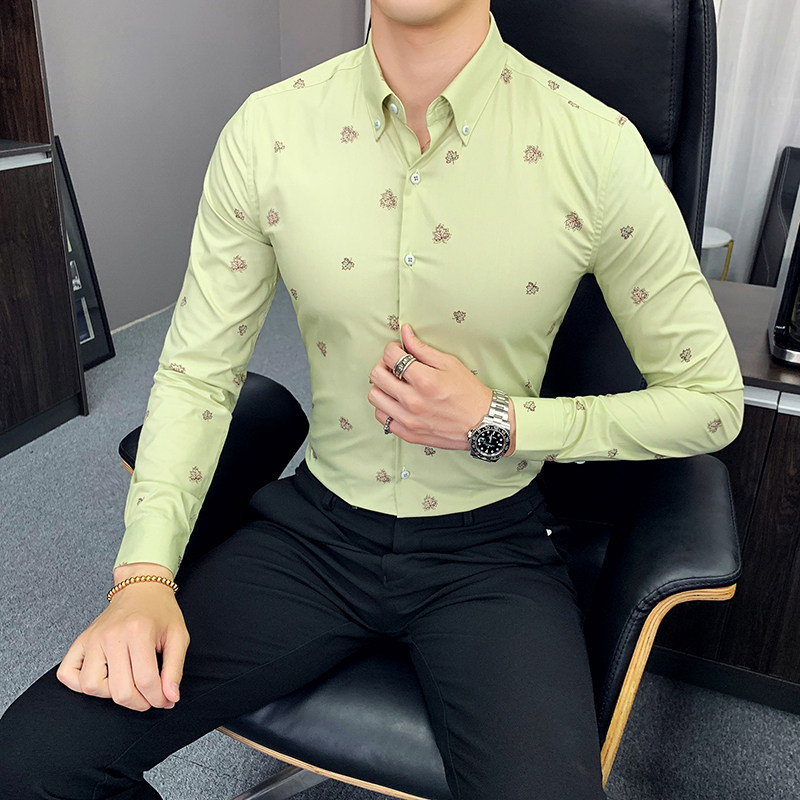 Men's shirt Long sleeve Korean slim-fit Yuppie gentleman British inch shirt Free ironing anti-wrinkle business casual printed shirt