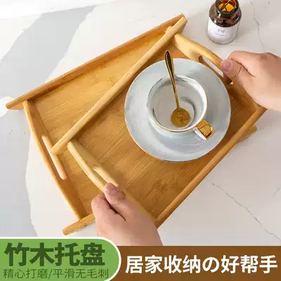 Rectangular tray wooden bamboo household tea set tea tray solid wood plate plate plate Japanese snack storage plate