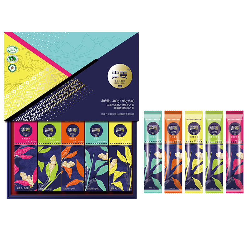Cloud Ginger Cards Organic Ginger Tea Two Flavors Five Color High-end Gift Box Cover Roping Small Yellow Ginger Ginger Tea