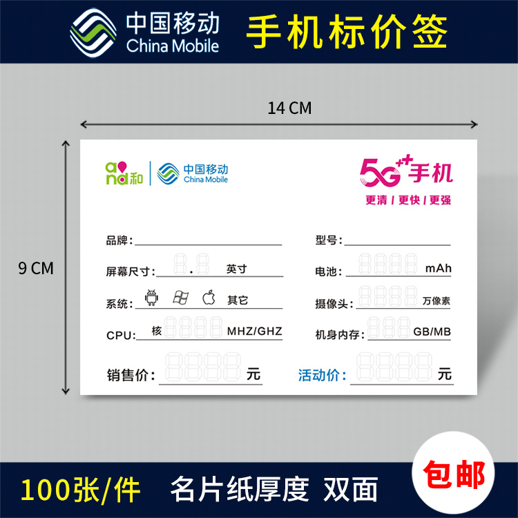 Mobile Phone Price Tag Paper Telecom Benchmark OPPO Vivo Mobile 5G Mobile Phone Functional Card Price Card Paper