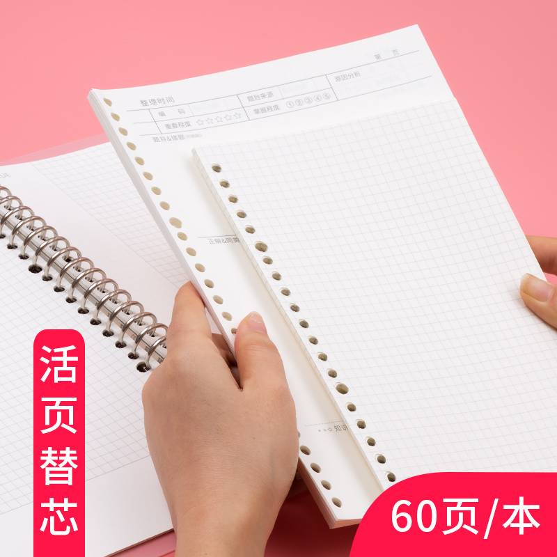 Loose-leaf cover for the core B5 horizontal line Cornell wrong question 20 holes A5 removable 26 holes notebook small square fixed clip paper inner page buckle ring shell lattice blank replacement coil This core removable paper