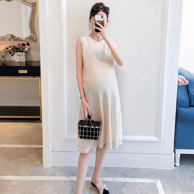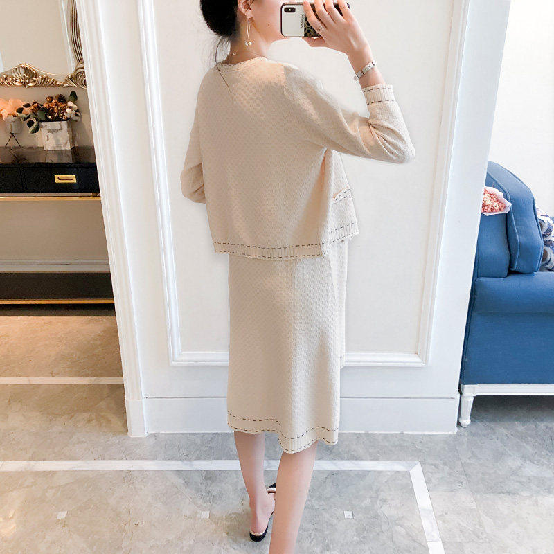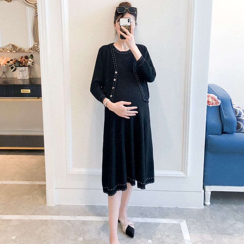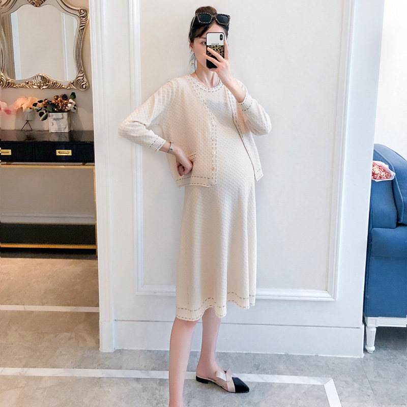 Pregnant women spring suit fashion small fragrance sweater vest dress two pieces of mom out early spring