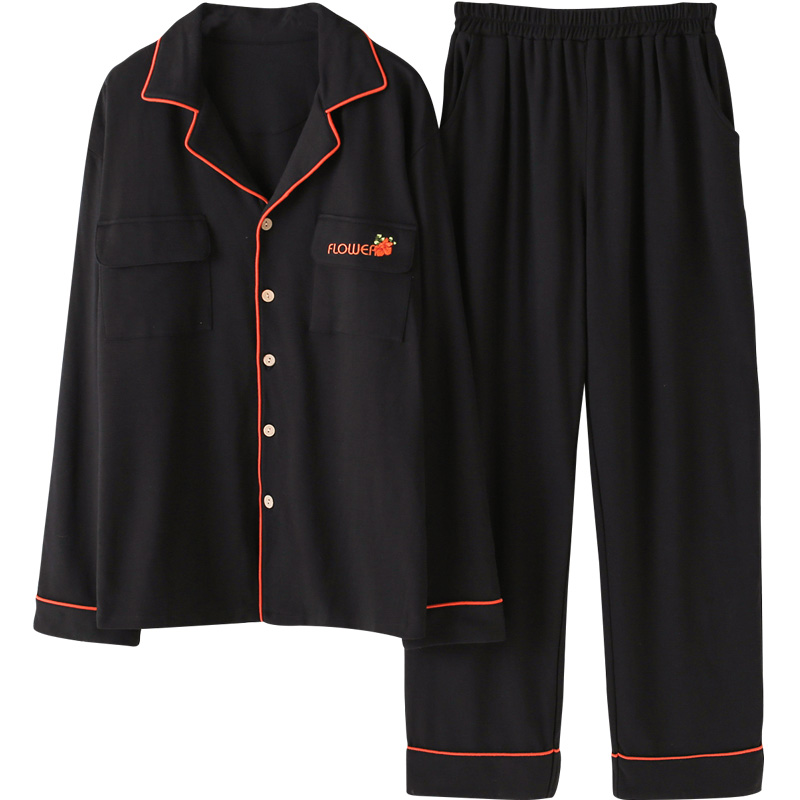 2019 New Men's Pajamas Spring and Autumn Cotton Long Sleeve Bottom Fashion Fashion 2 piece suit