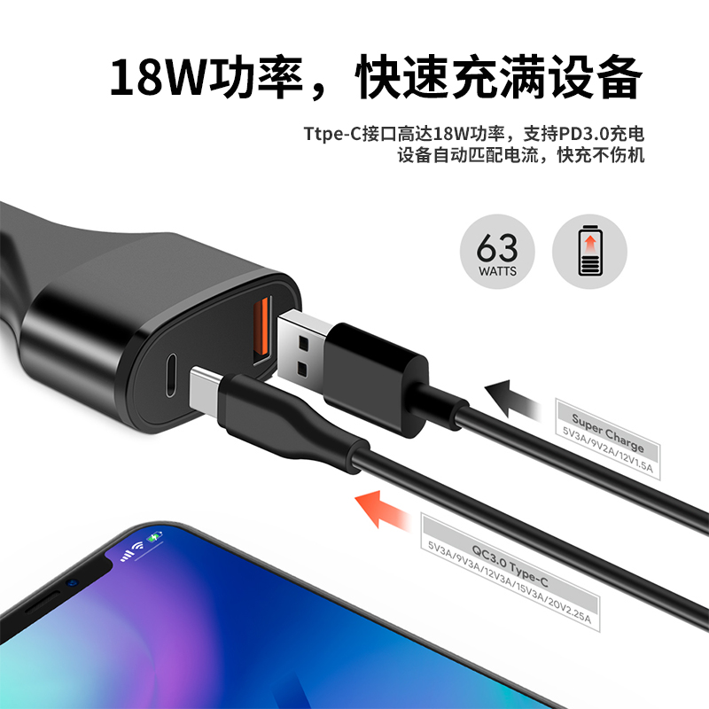 Lenovo Huawei Xiaomi Apple MacBook on-board power supply adapter USB C PD45W car charging charger