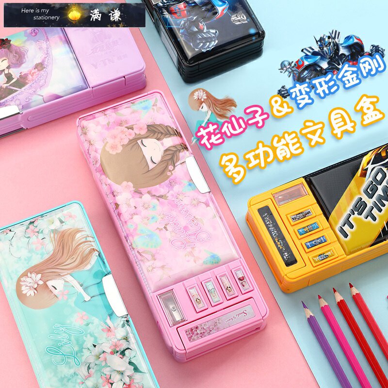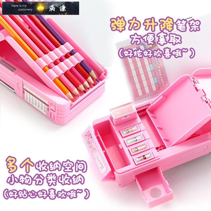 Pen box Multi-function large capacity double open stationery box Boy girl with net red simple Korean version small fresh cute Korean creative personality adorable plastic cartoon kindergarten primary school students pencil box