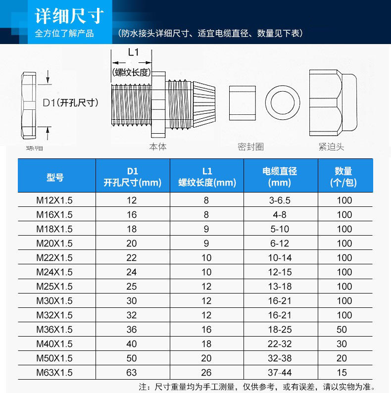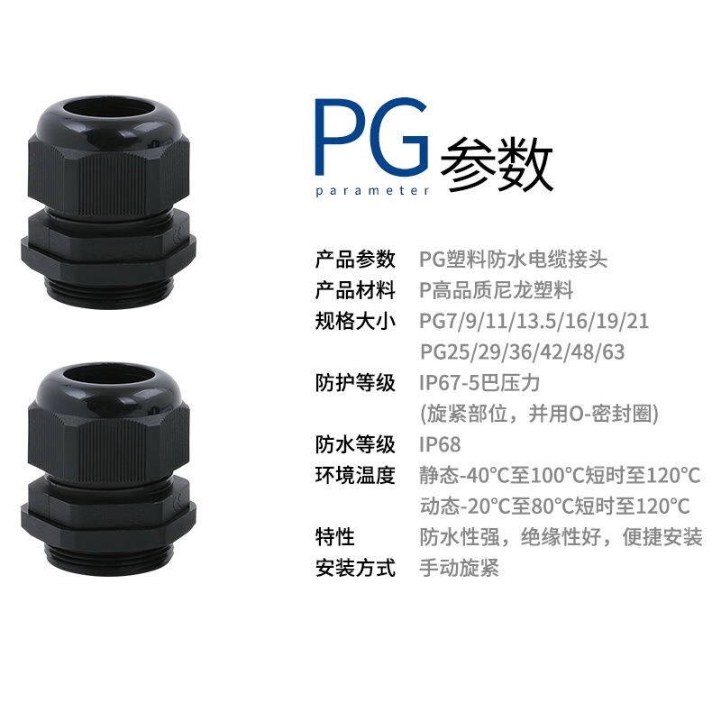Nylon plastic wire and cable waterproof joint PG7 9 11 13 5 16 19 Gagran head fixed seal