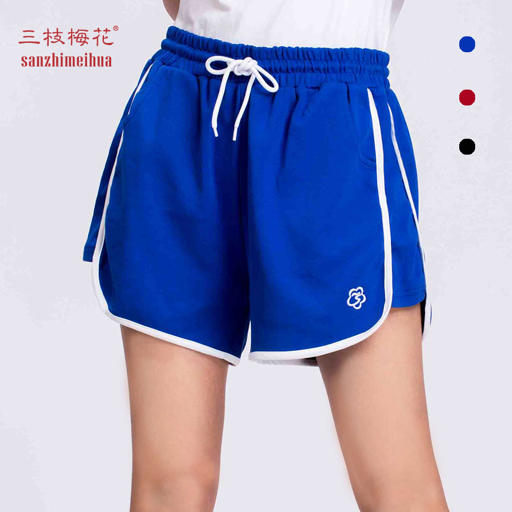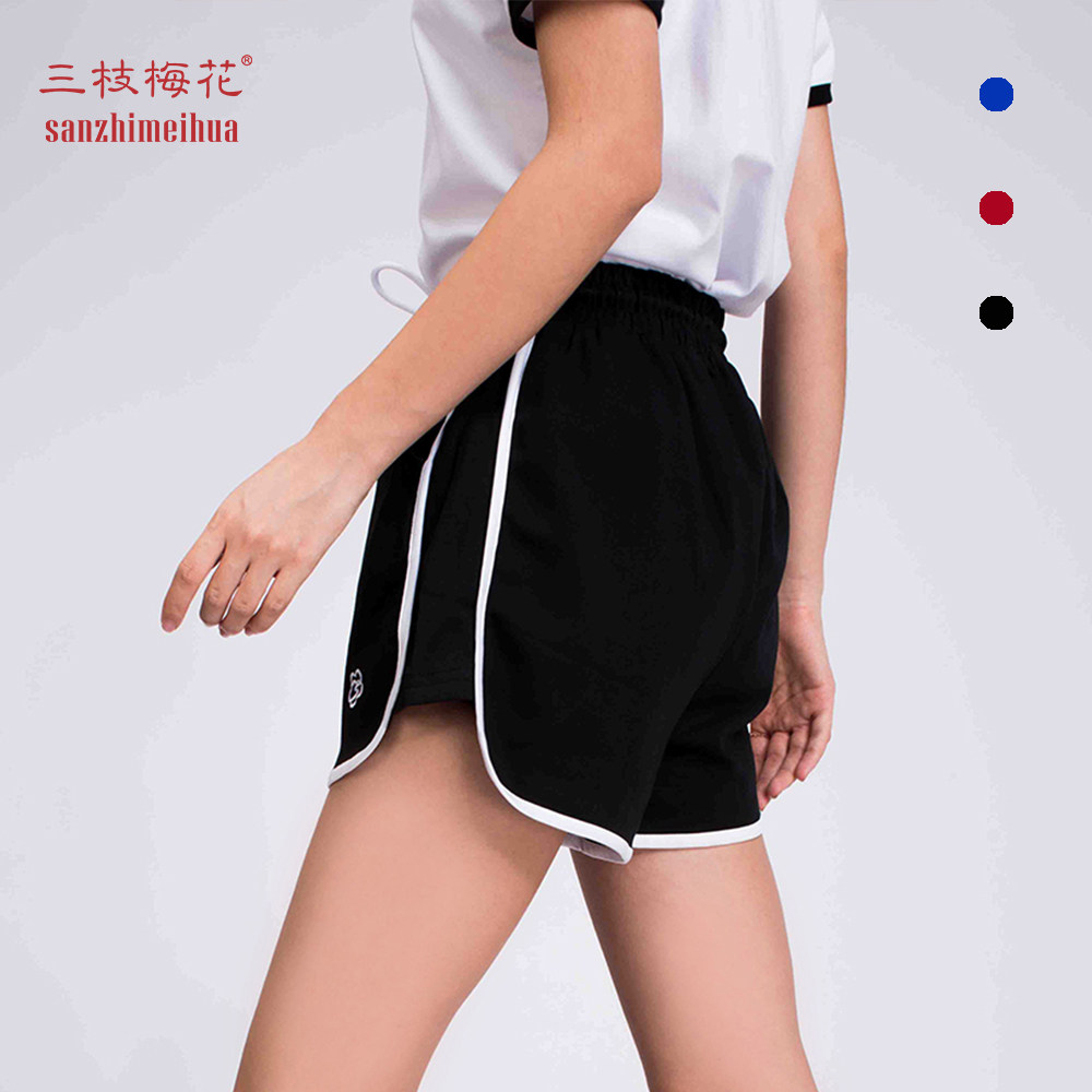 Three Branches Plum Blossom Sports Shorts Women Pure Cotton Summer Slim Fit Mid-Waist Fitness Running 30% Pants Anti-Walk Light