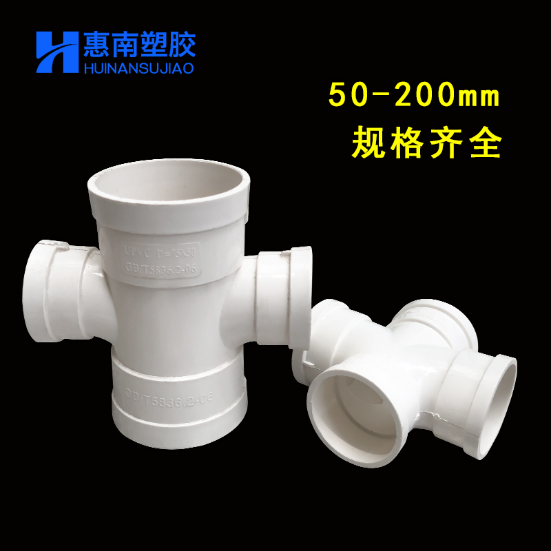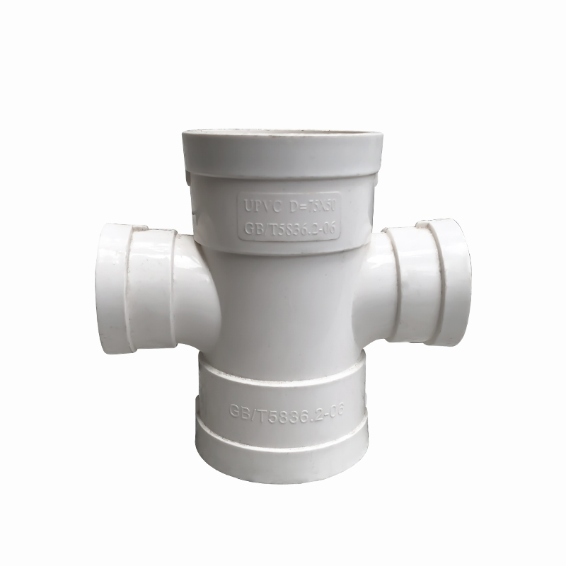 pvc four-way drainage pipe fittings plane positive four-way variable diameter cross-through sewer pipe joint 5075110160