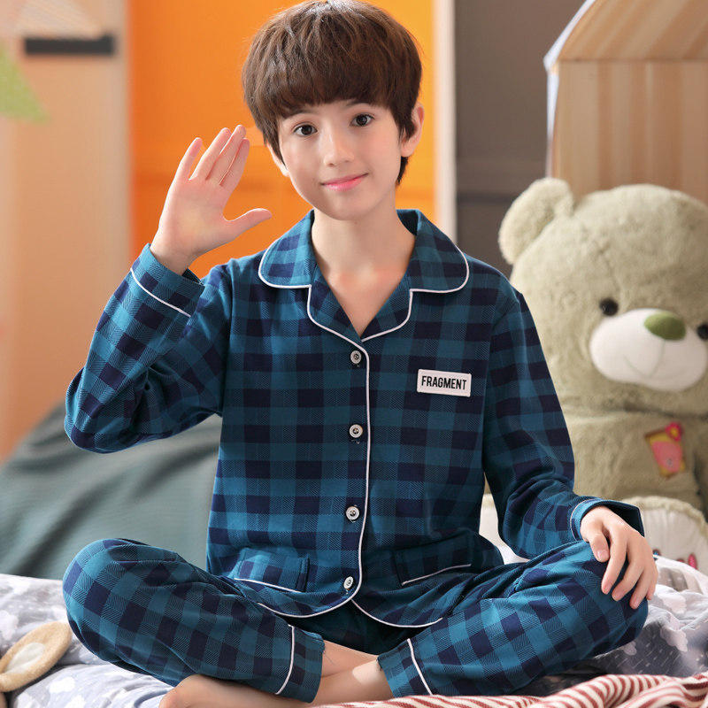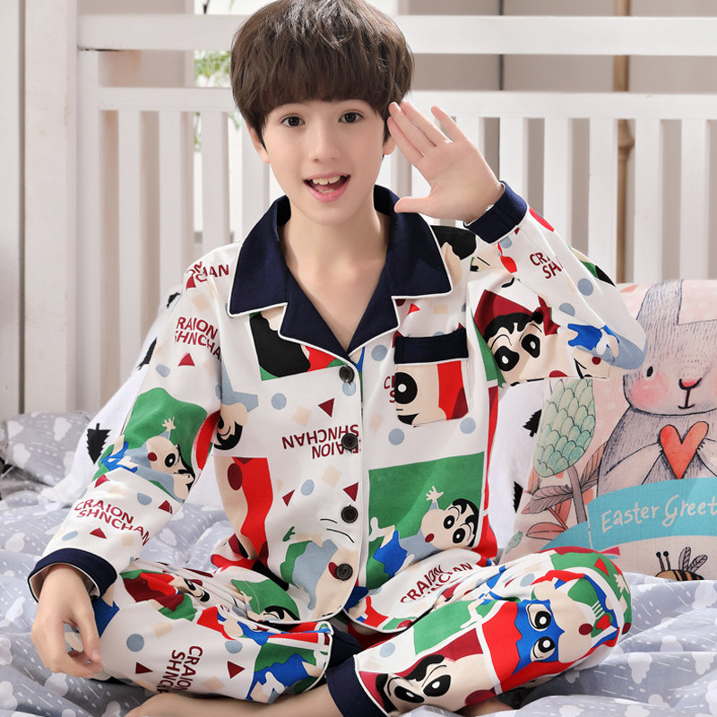 Boy Sleepwear Long Sleeve Pure Cotton Spring Autumn Season Children Boy Suit All-cotton Boy Autumn And Winter Money 8-10-14