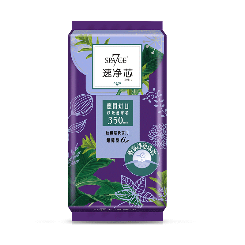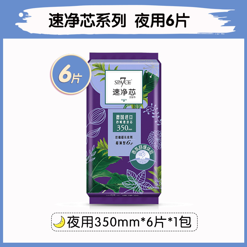 (RMB39 6 pieces) 7-degree space space7 sanitary cotton female breathable speed net core extremely thin extra-long night use