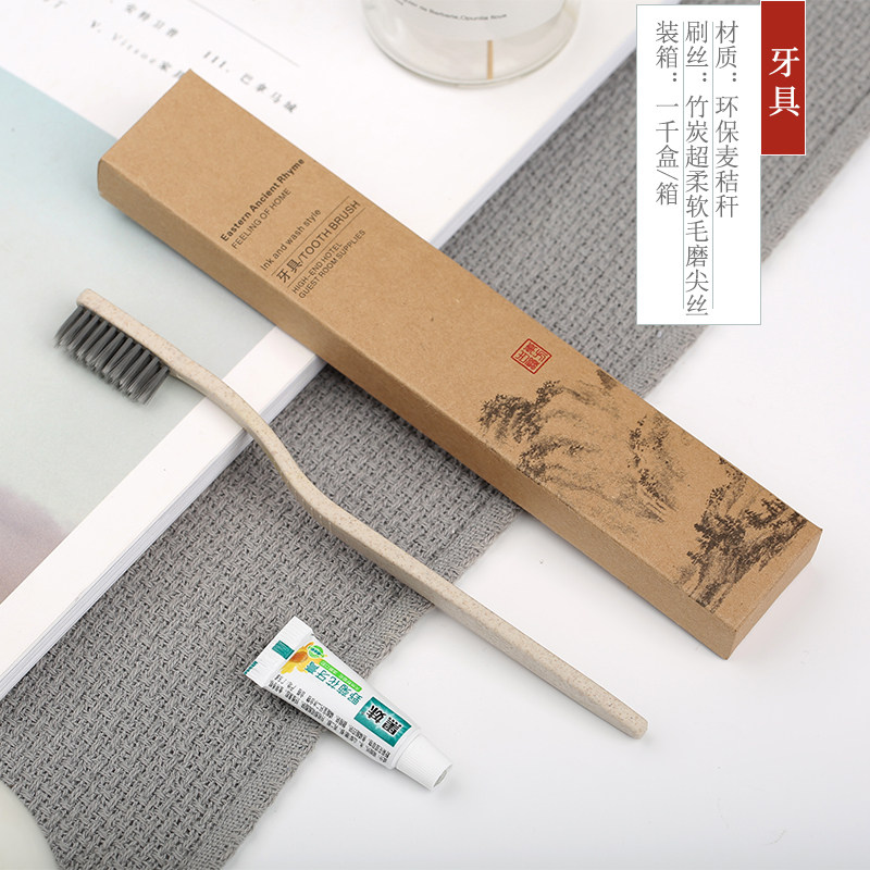 Star hotel disposable toiletries Hotel bed and breakfast toothbrush toothpaste set Guest room bamboo charcoal soft hair teeth