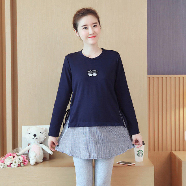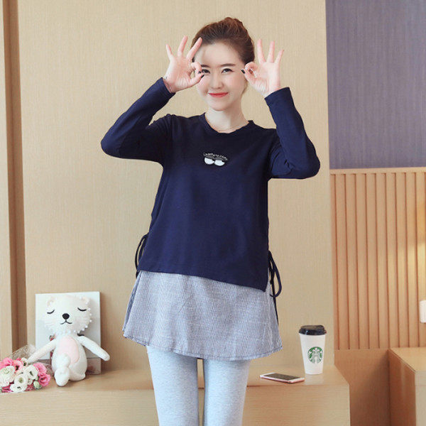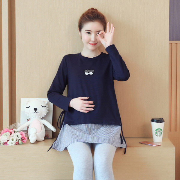 Pregnant Woman Spring Dress Korean Version Fashion Long Sleeve Pregnant Woman Fake Two Spring Autumn Pregnant Woman Blouses Pregnant Woman T-Shirt Casual Suit Woman