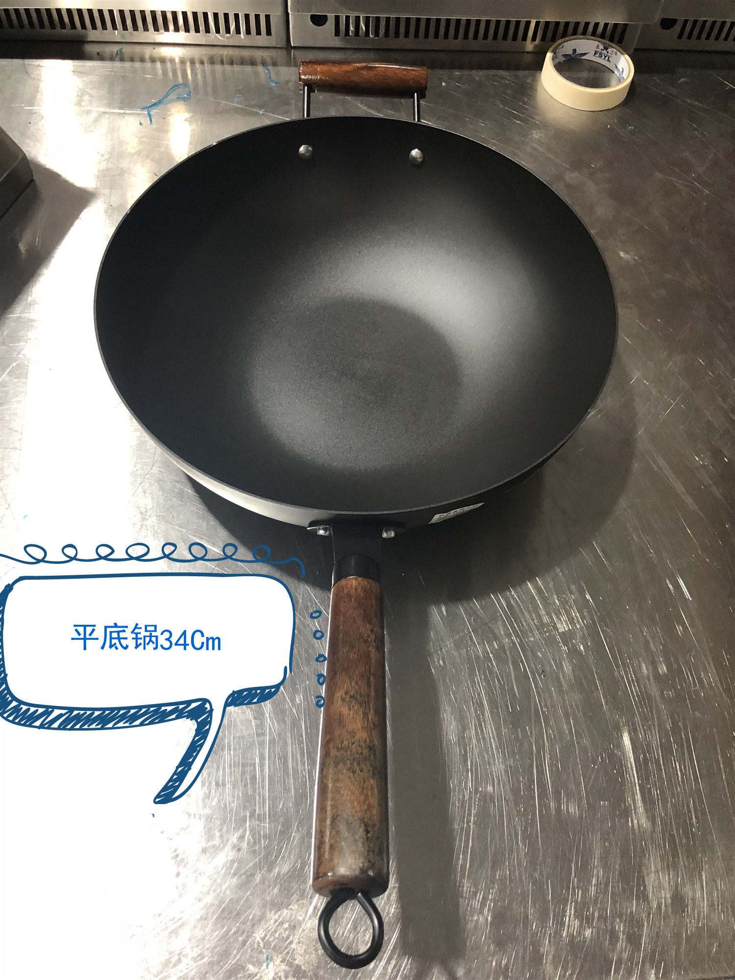 34CM flat bottom pan with a flat bottom