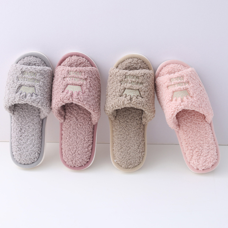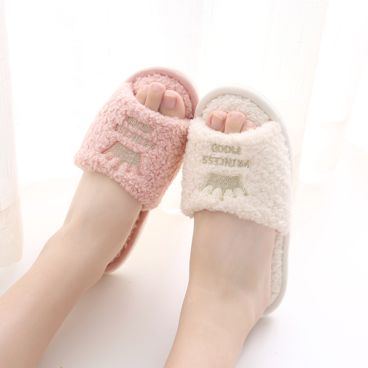 Autumn and winter home Home Opening Cotton Slippers Women's Anti Slip Warm European Goods Hair Wool Wood Floor Muted Soft Bottom