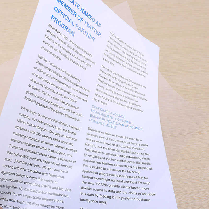 A4 High transparent film (20 silk*100pcs box) A4 Frosted film (40 silk*50pcs box)