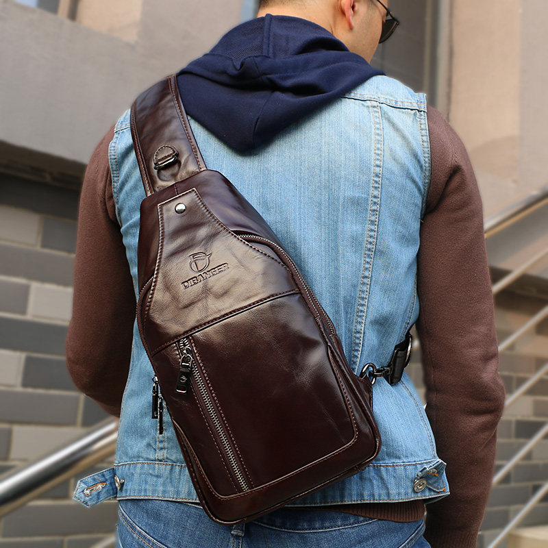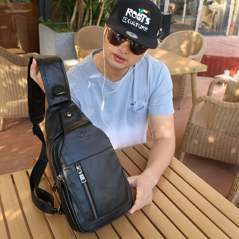Shoulder bag men's leather large-capacity first layer cowhide messenger bag chest oblique shoulder bag men's chest bag soft leather leather