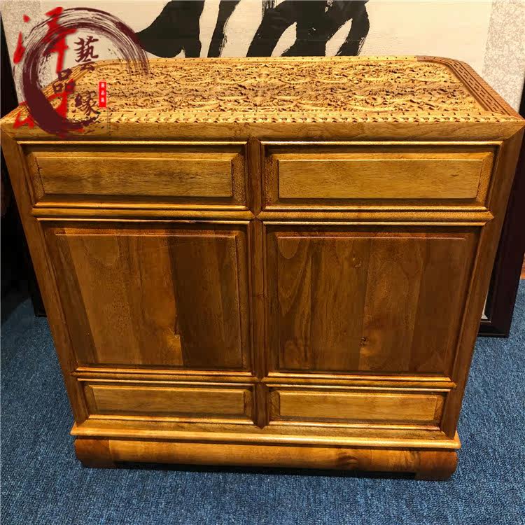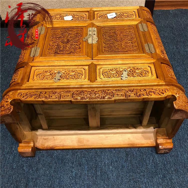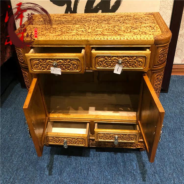 Authentic Sichuan golden nanmu carved dragon cabinet lobular Zhennan savings cabinet solid wood bookcase home carving ornaments