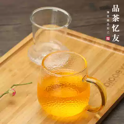 Tea tasting amuiyou mushroom tea cup tea water separation office household with a cover hammer eye pattern heat-resistant and anti-frying glass