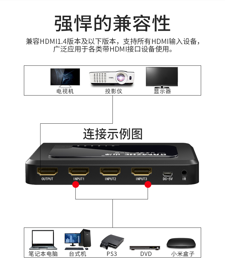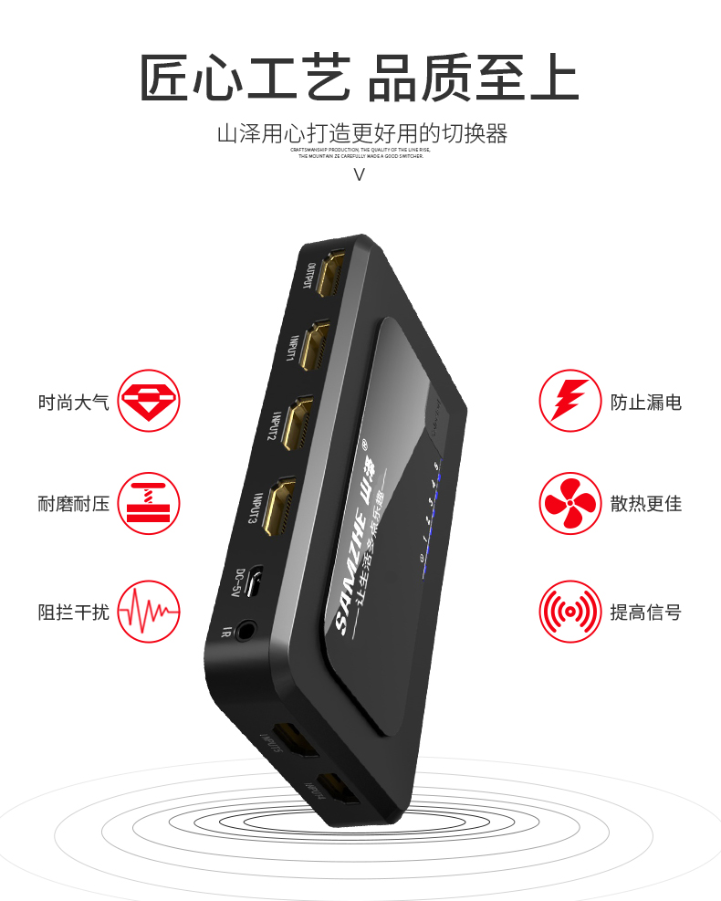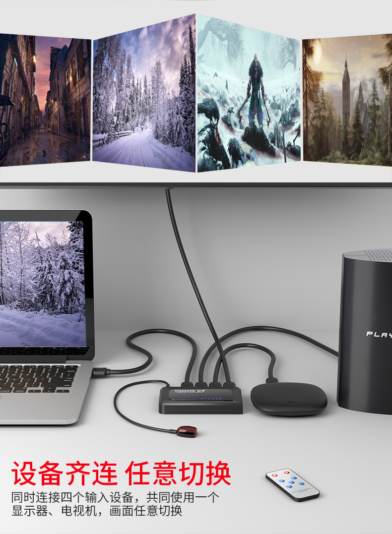 Mountain Zehdmi Switcher 2-in 3-in 4-ins 5-in-1 Out of the dispenser Audio high-definition Manual Remote Control Sub-screen