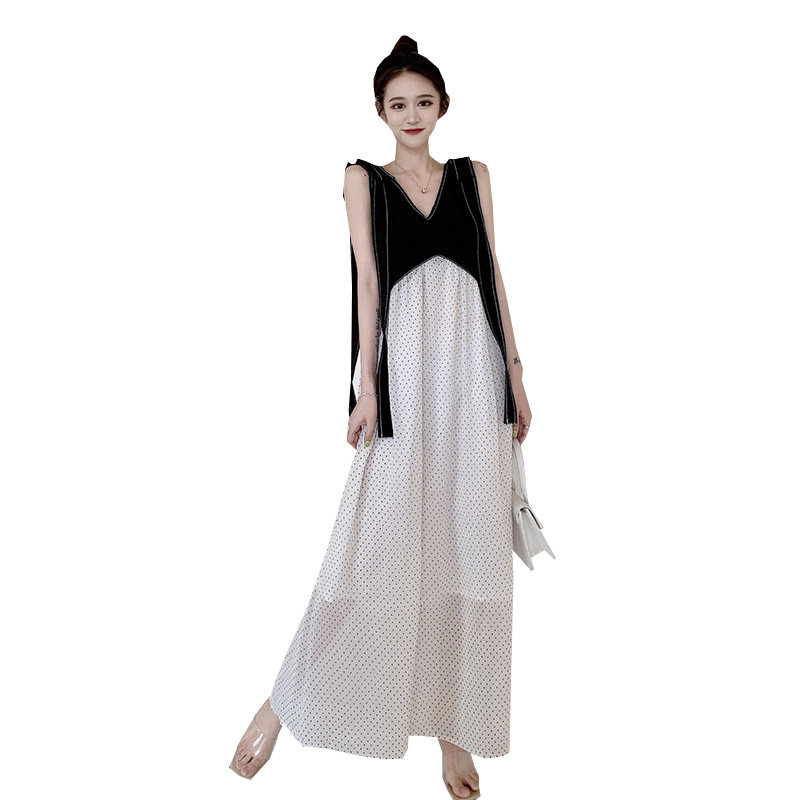 Large size V-neck polo point sling dress waist thin temperament dress fairy Super fairy stem stem Orange first love skirt