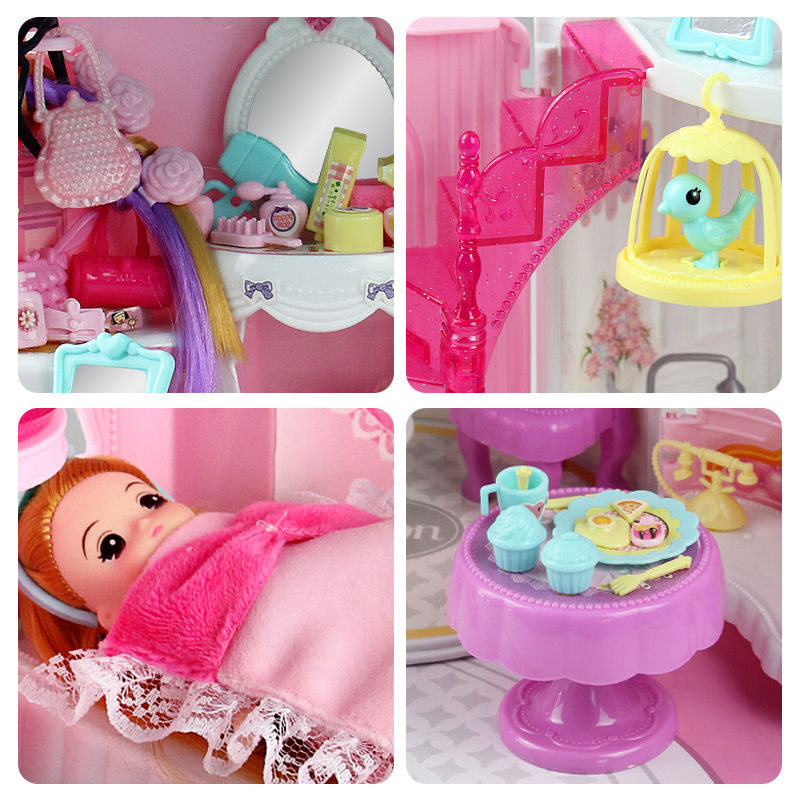 Dream Castle light version 5 dolls 4 clothes Dream Castle double-decker villa 4 dolls light double-decker villa light music version 3 dolls double-decker villa light music version 1 baby