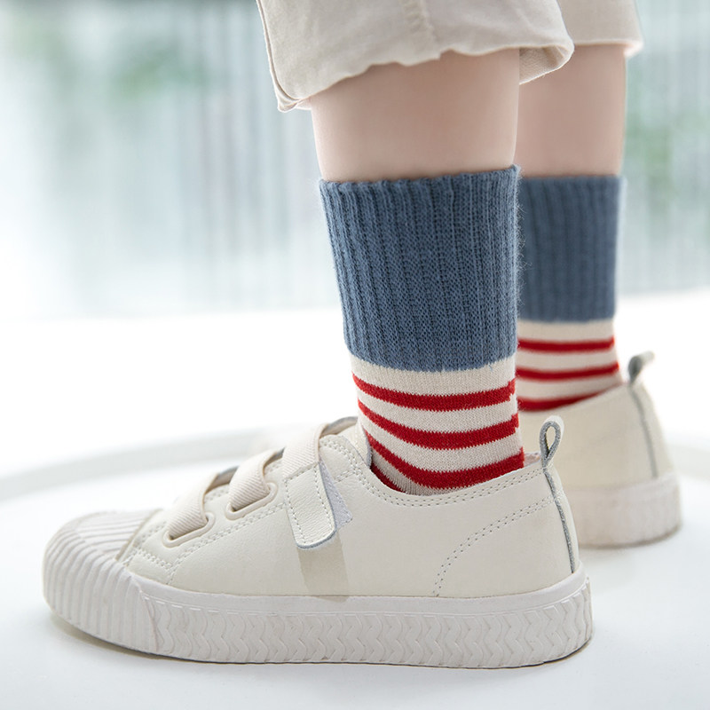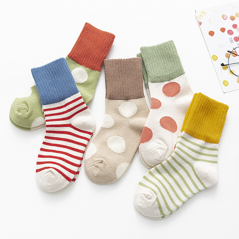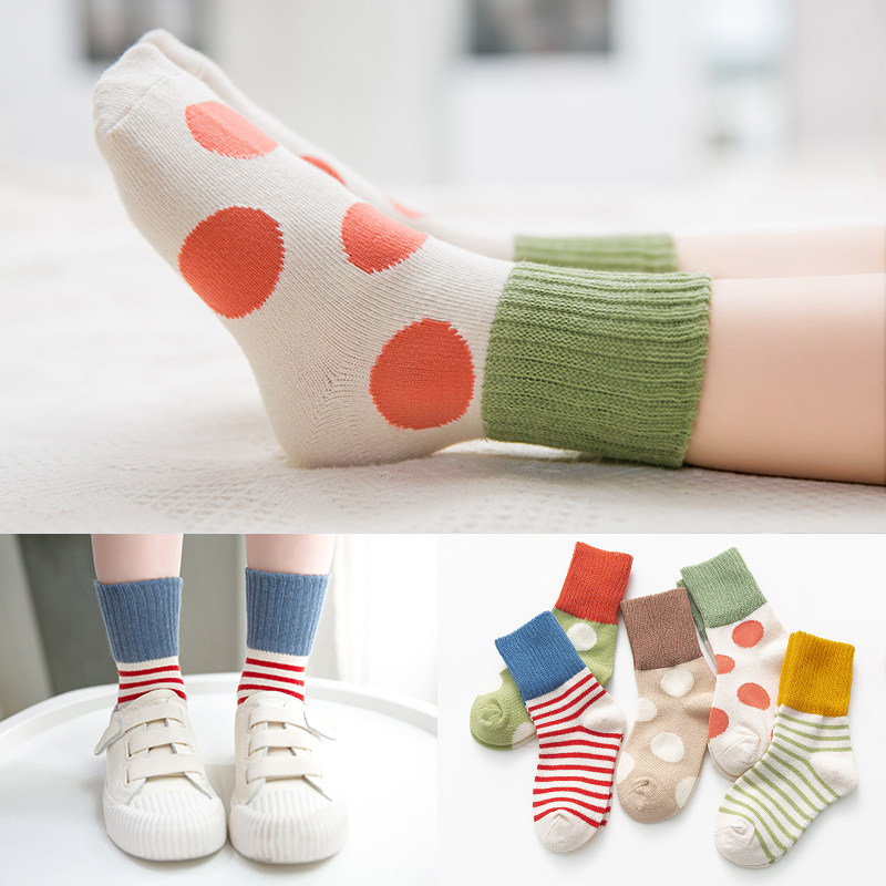 Striped polka dot Gao Luokou pure cotton children's socks in the big children 1 boys and girls 3 children in the tube socks 5 autumn and winter 7-9 years old