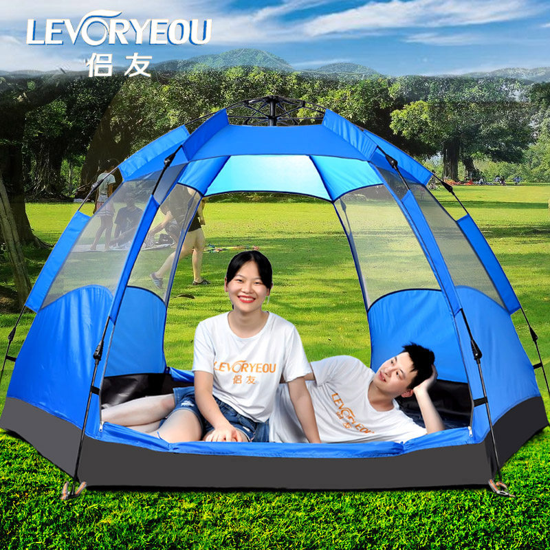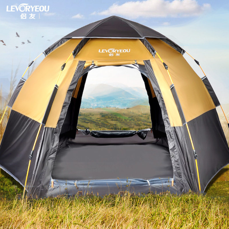 Tent outdoor camping thickening rain-proof camping speed-opening hexagonal tent fully automatic double-layer 3-4 people light four seasons