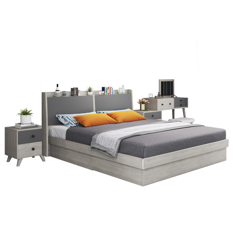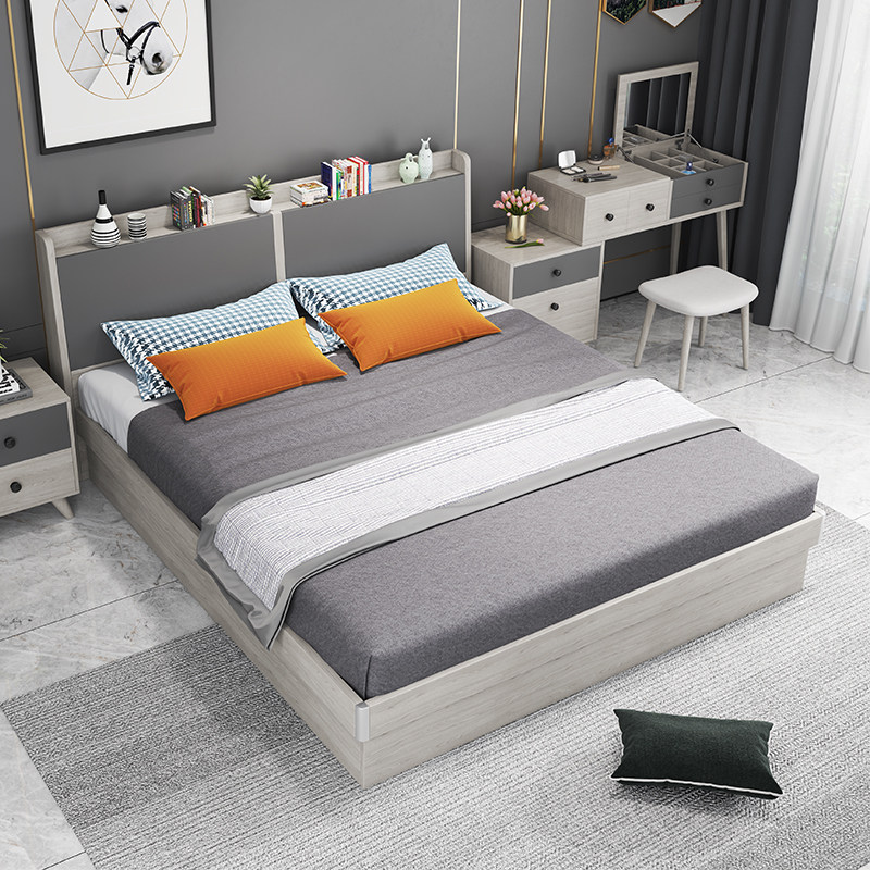 Nordic storage high box bed Simple modern economy bedroom 1 5 meters 1 8 bedroom size apartment type pneumatic bed