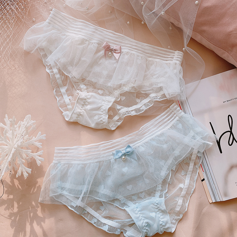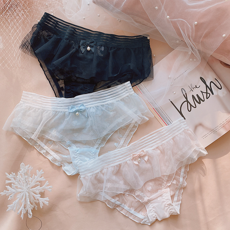 Japanese girl underwear bow fairy flash love perspective briefs sweet and comfortable sexy mesh shorts