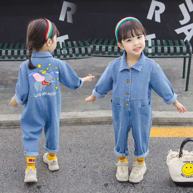 Baby denim jumpsuit Spring and autumn girls ' frock 3-year-old children's outerwear 1 baby Hayi Foreign school children's spring dress