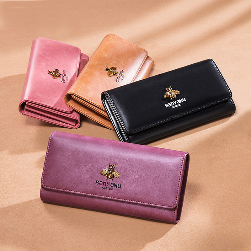 Wallet female long version simple and versatile atmosphere fashion wallet soft leather little bee retro Europe and the United States 2019 new leather