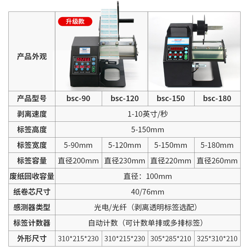 bsc QQTCW-Q90 automatic stripping machine Label sticker PET matte silver paper Coated paper Thermal paper automatic transparent label tearing automatic counting separator Bar code sticker tearing machine