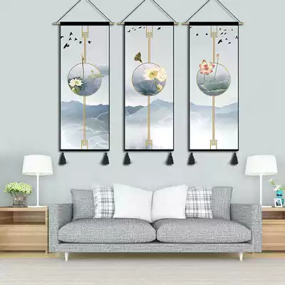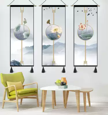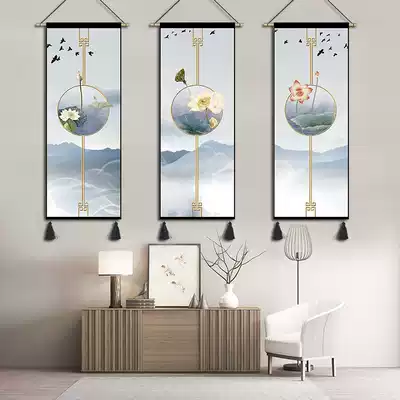 Creative decorative painting lotus new Chinese hanging painting modern living room study corridor aisle staircase murals vertical Chinese style