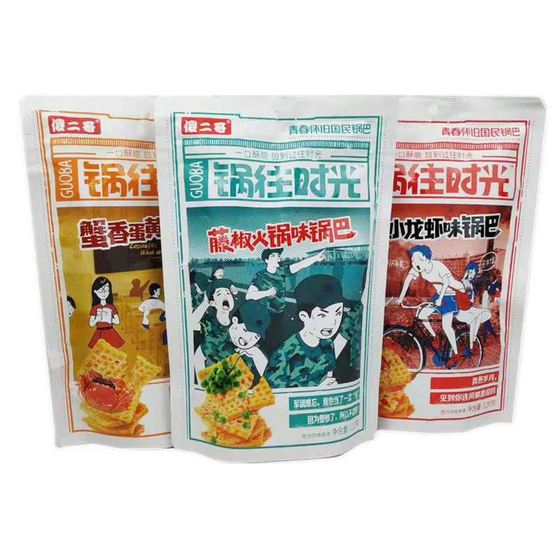 Silly Second Brother's Pot Go to Time Crispy Rice 120g*3 Packs Spicy Crayfish Vine Pepper Hot Pot Crab Yellow Millet Crispy Rice Snacks