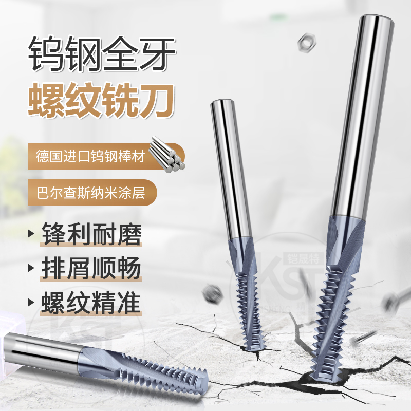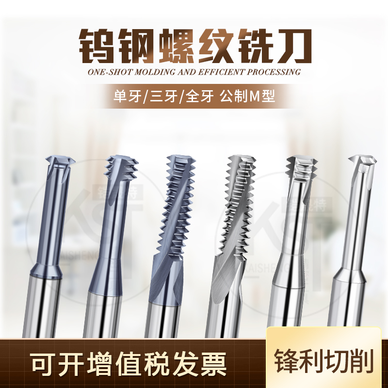Numerical control monolithic tungsten steel full tooth thread milling cutter alloy milling tooth internal and external thread knife aluminium with steel M3-M20
