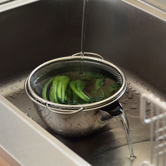 Touching design with flow nozzle) Japanese made 18-8 stainless steel horizontal wash vegetable basin filter basin strainer suit