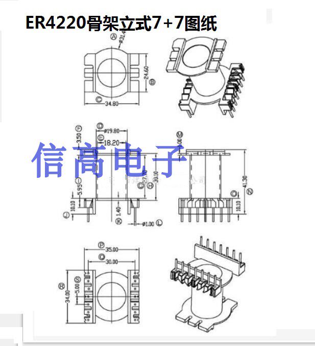 ER42EC4220 skeleton vertical 7 7-pin with EER4220 core