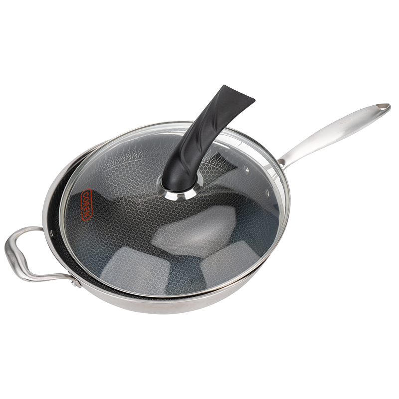 Coren honeycomb not stained with pan 304 stainless steel induction stove gas stove No coating less oil smoke Home frying pan