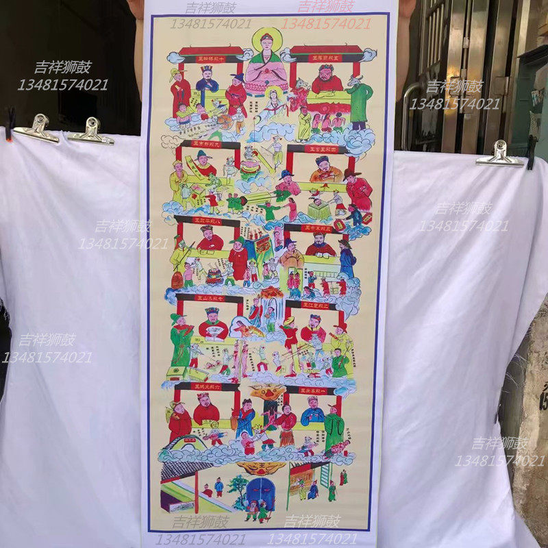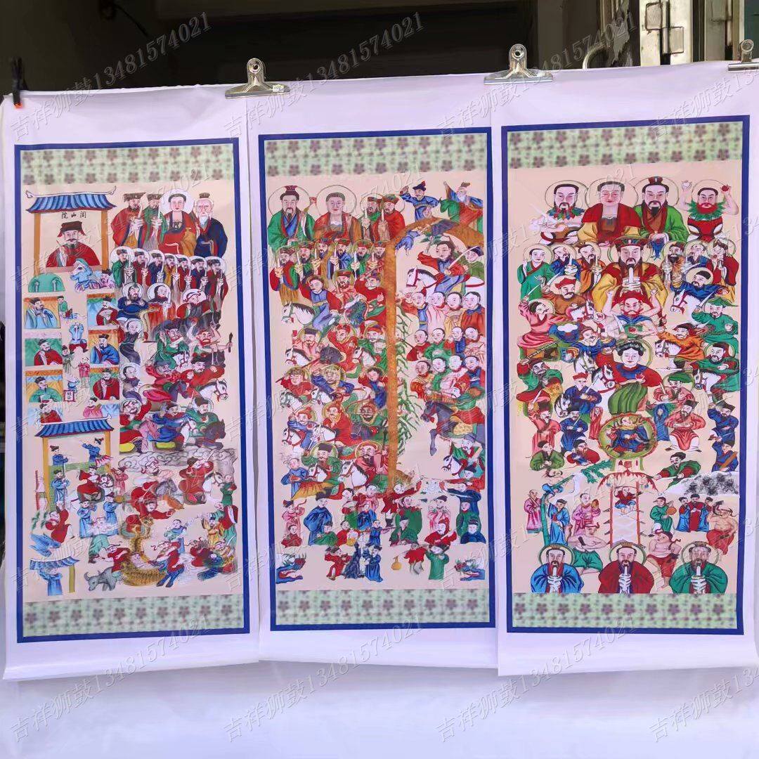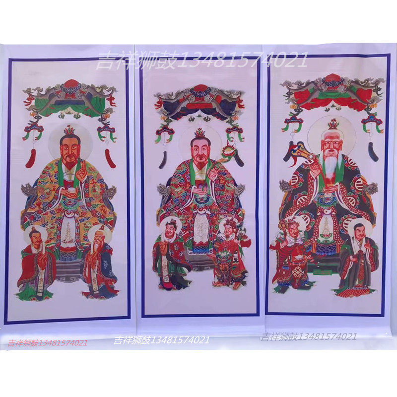 Taoist Hanging portrait Taoist folk Taoiseach The portrait of Sanqing Sanbao Trialtars ten Wang ten Wang ten Temple Yan Wang's total altar figure